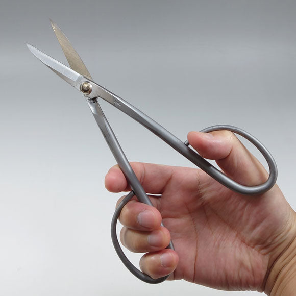 Tijeras japonesas de poda fabricadas por KANESHIN, diseñadas para ofrecer cortes limpios, precisos y estables en ramas finas, brotes y follaje denso. Su longitud de 210 mm proporciona mayor alcance y control, facilitando el trabajo en bonsái, jardinería y poda de plantas ornamentales con detalle profesional.